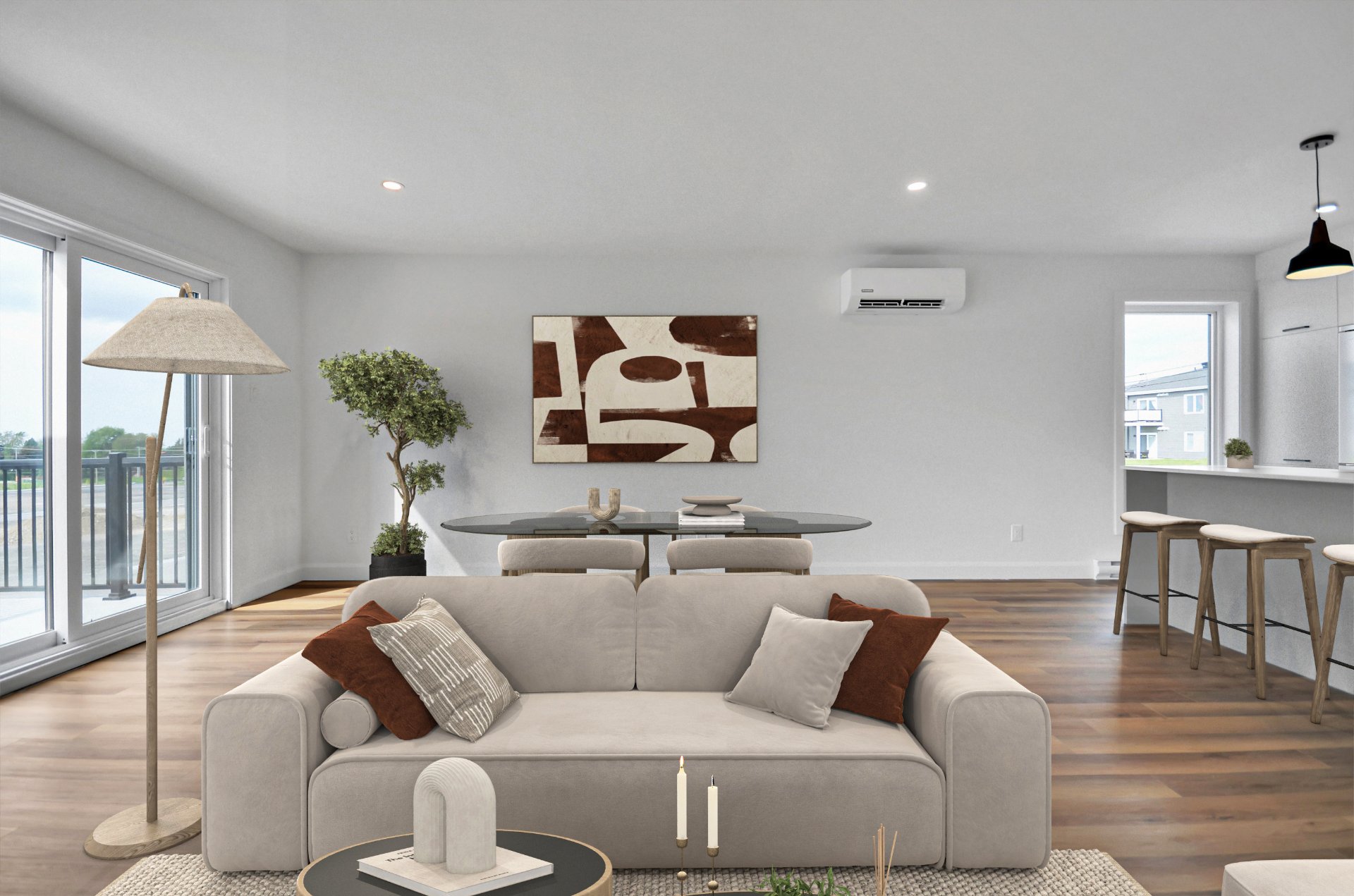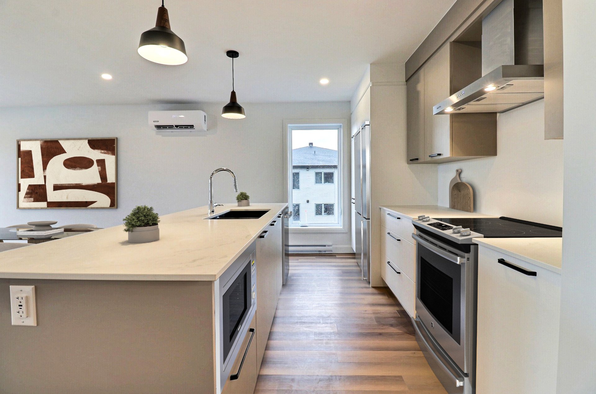 Balcon privé, Échangeur d'air, Installation aspirateur central, Thermopompe murale