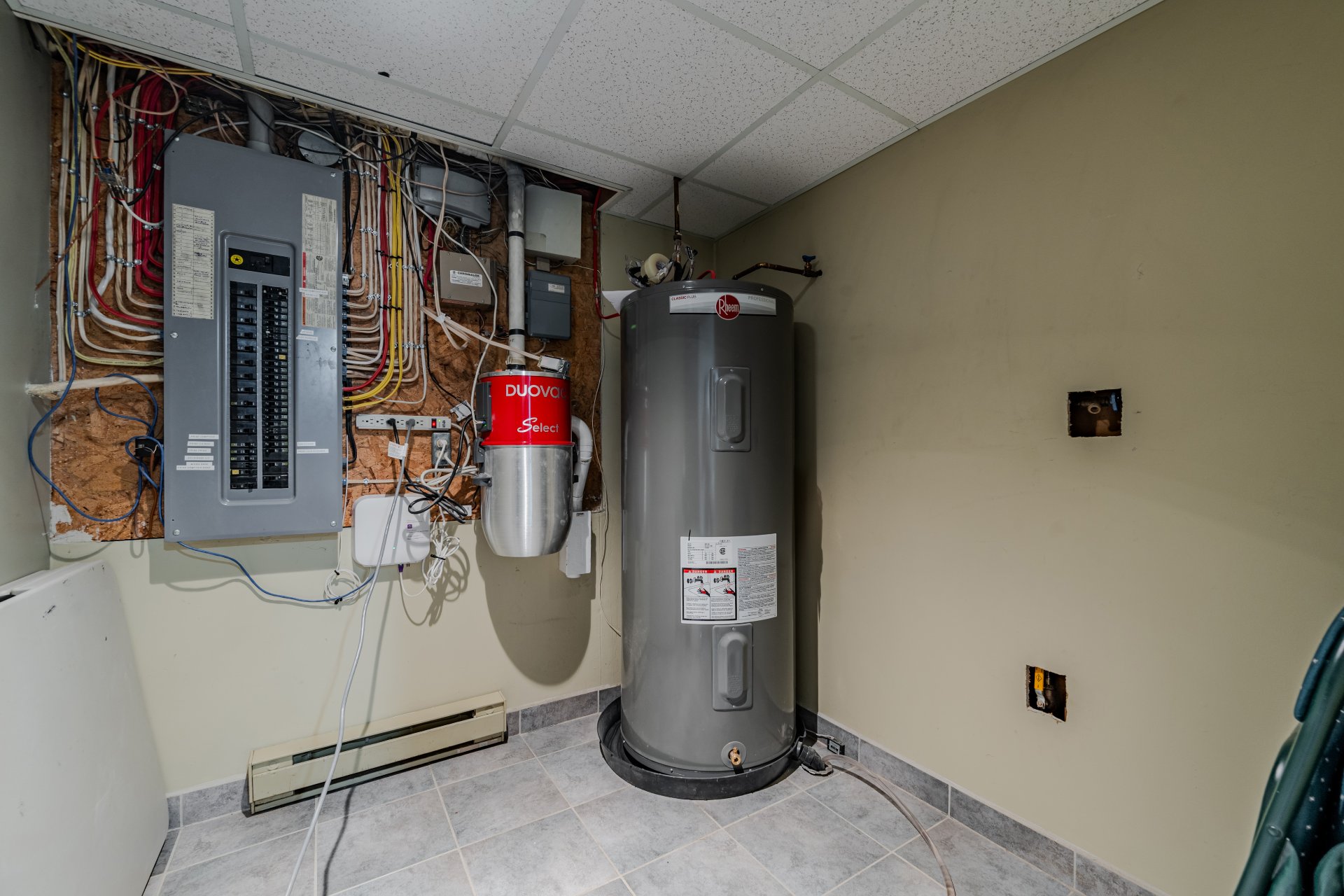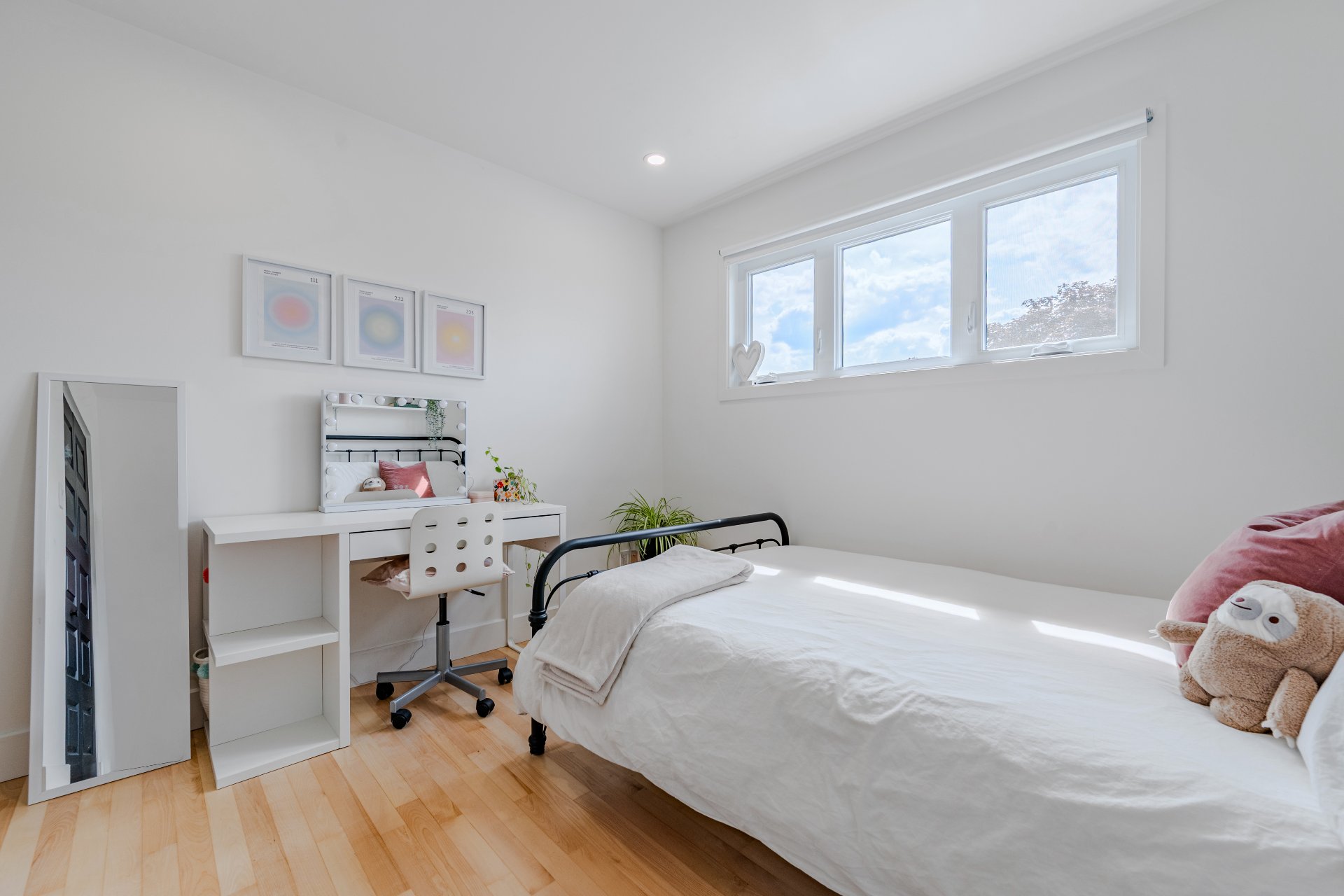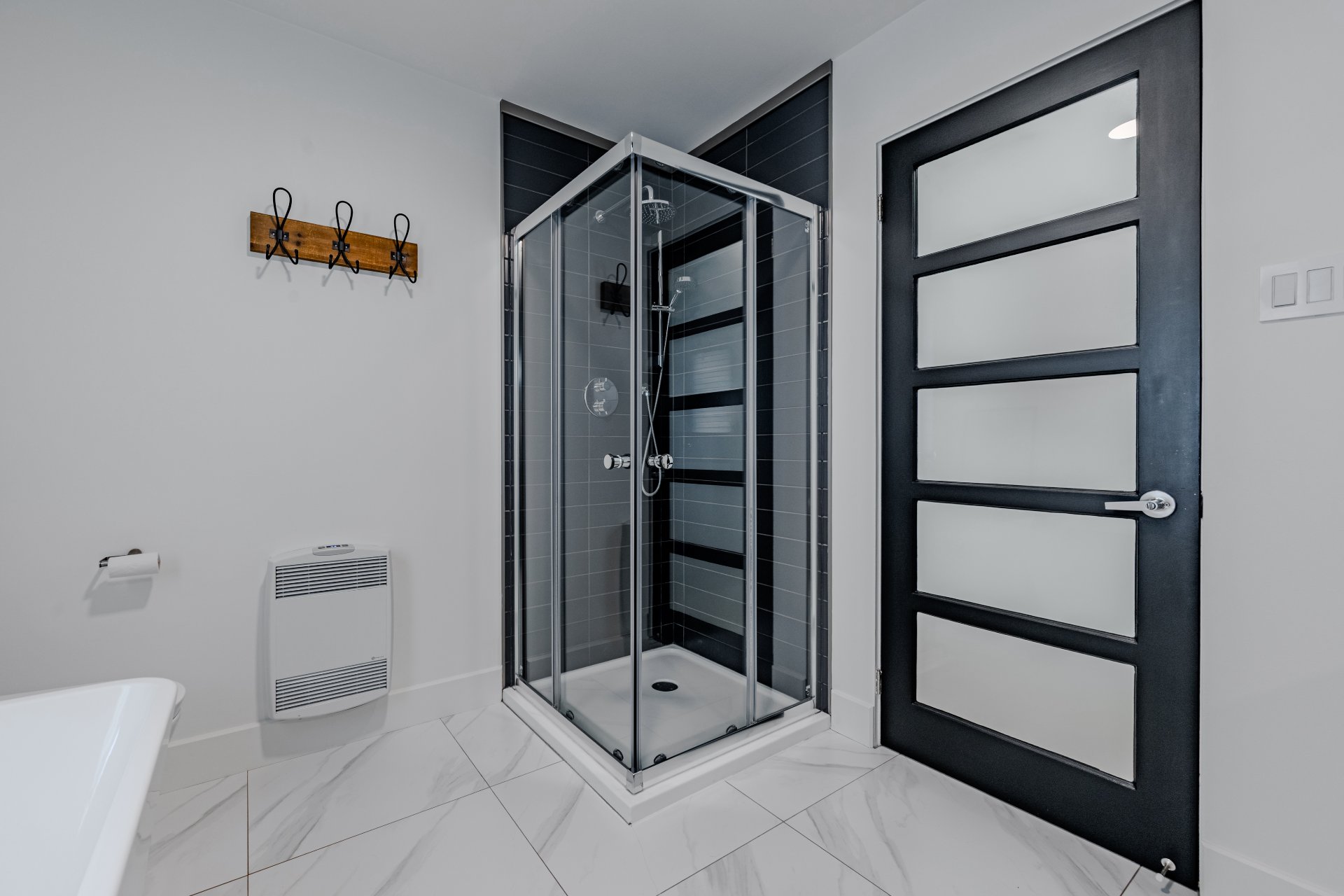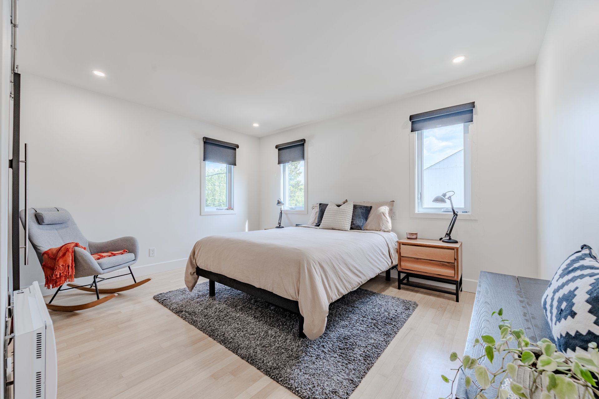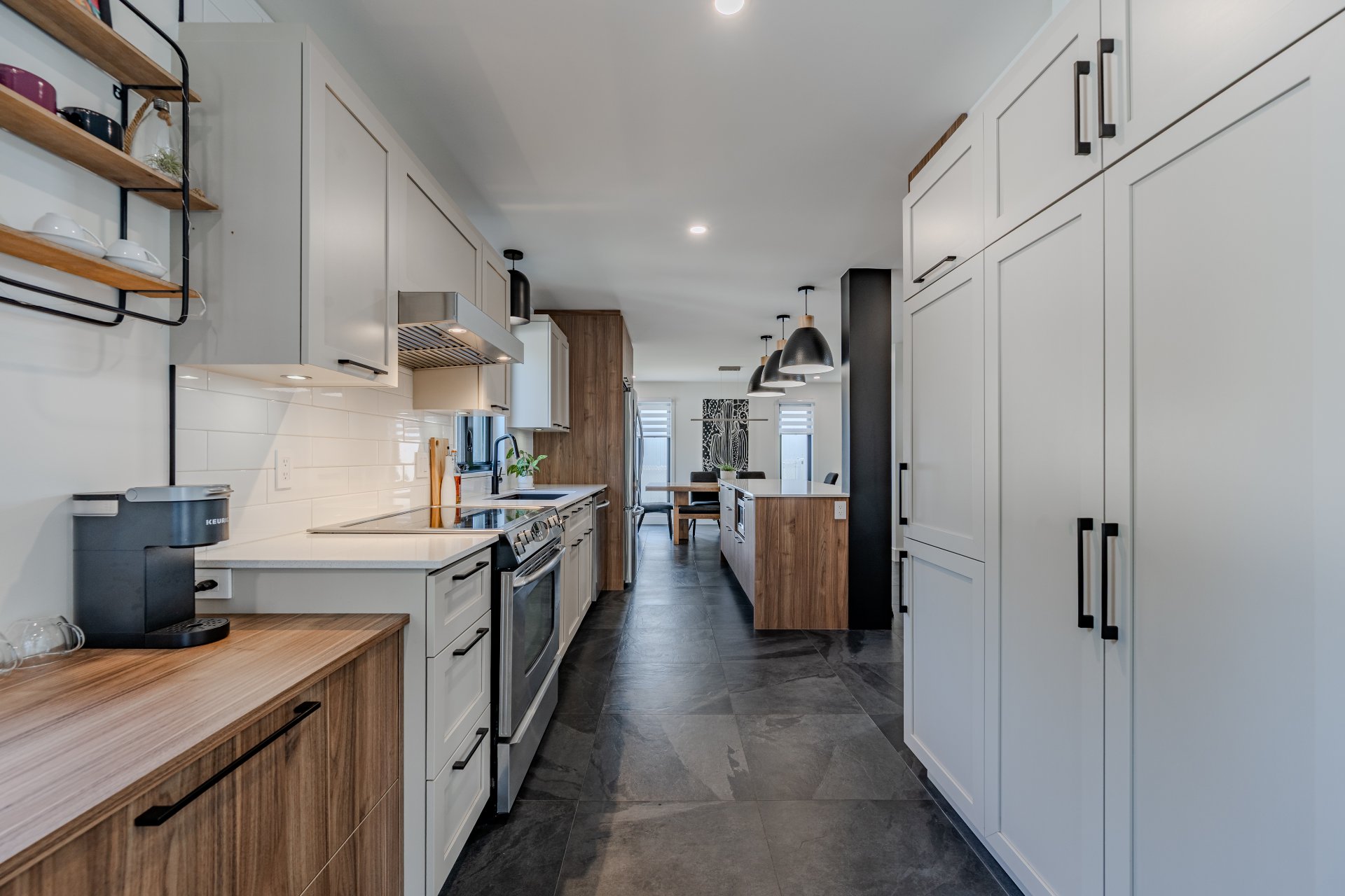 Aménagement intérieur * Palier supérieur : 4 chambres sur un même niveau, dont une suite des maîtres avec walk-in et salle de bain privée. Deuxième salle de bain complète avec douche moderne et bain autoportant. Garde-robe de type penderie avec chute à linge intégrée menant directement à la salle de lavage au sous-sol. * Palier d'entrée : vaste hall avec garde-robe et salon lumineux doté d'une vaste fenestration, d'un plafond cathédral et d'un foyer à bois (2023) dans un manteau de brique élégant. * Palier cuisine / salle à manger : espace moderne avec cuisine rénovée, comptoirs en quartz, îlot central, salle à manger, coin dînette et salle d'eau. Planchers chauffants sur tout le palier. Grande porte-patio de 8 pieds donnant accès à la cour arrière.