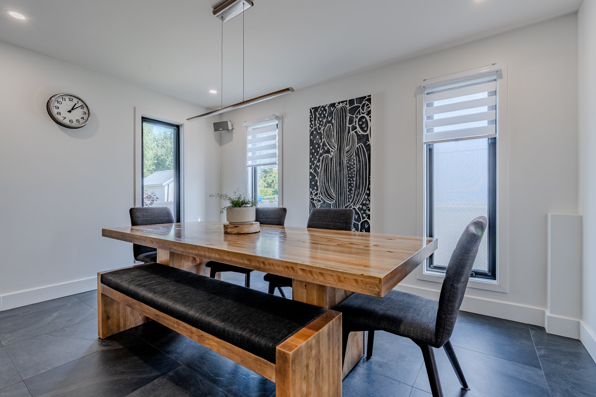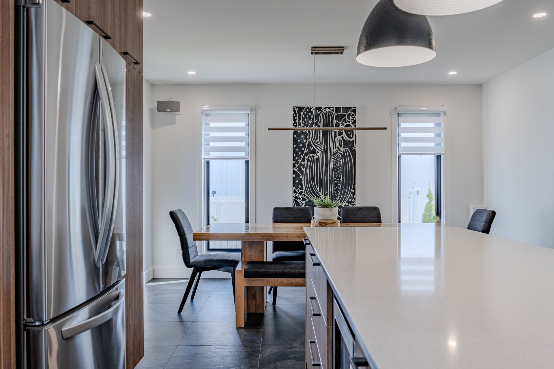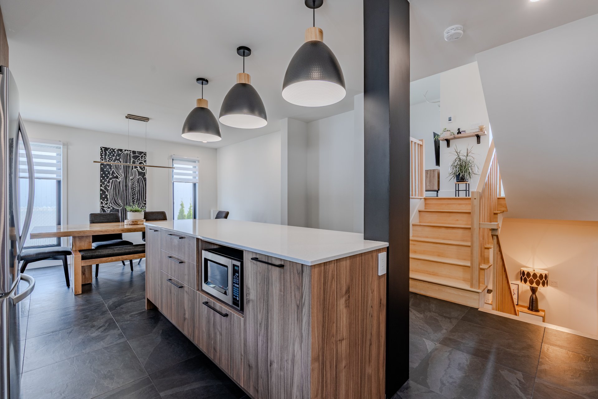 Atouts * Planchers chauffants au coeur des espaces de vie. * Maison polyvalente offrant des zones distinctes et adaptables. * Architecture unique, spacieuse et lumineuse. * Garage intégré répondant aux besoins des plus exigeants. * Emplacement stratégique dans un secteur prisé de Rimouski.