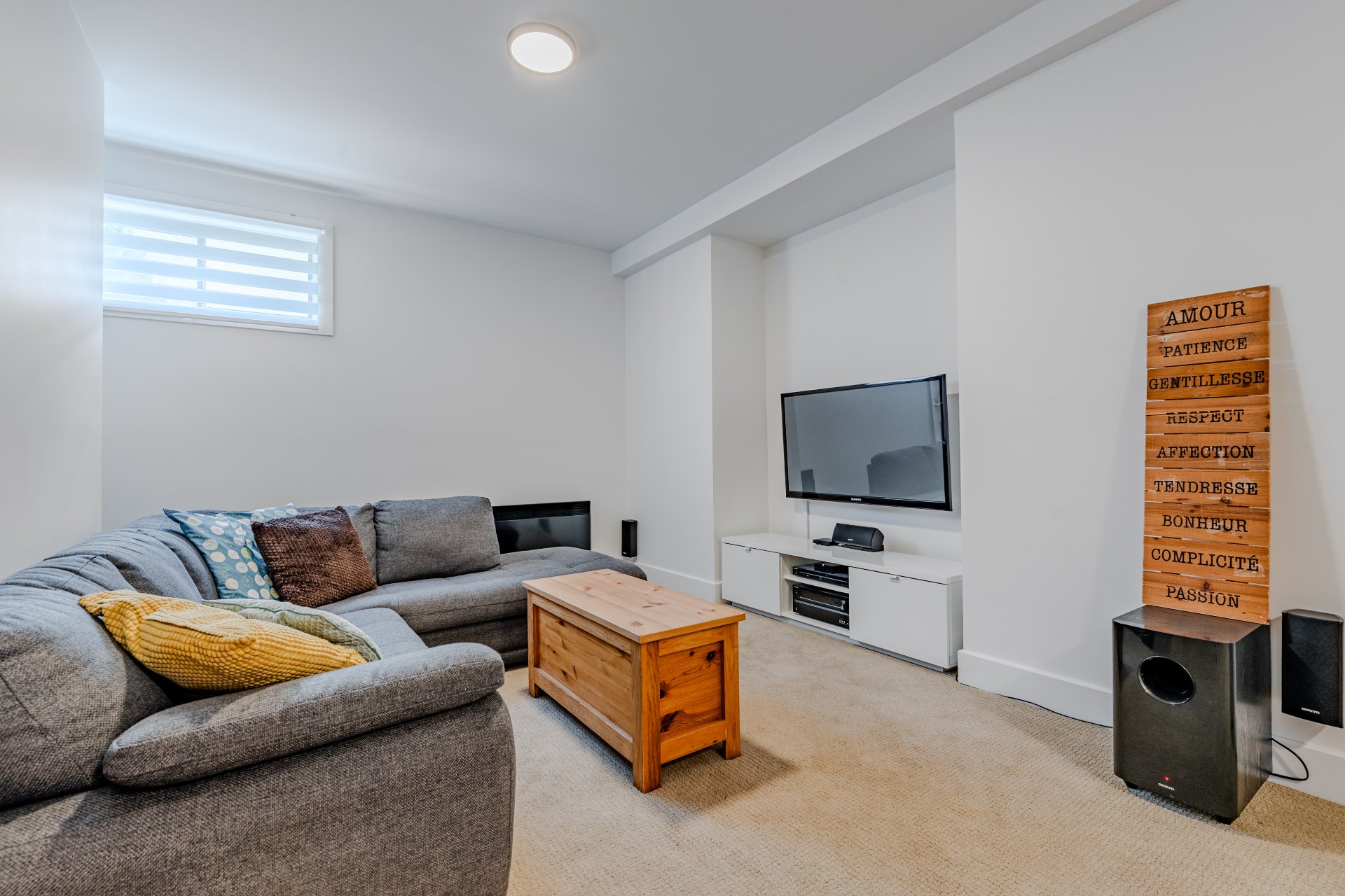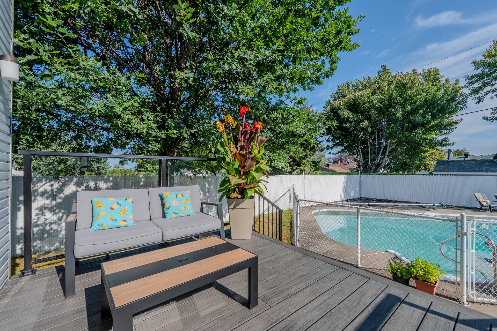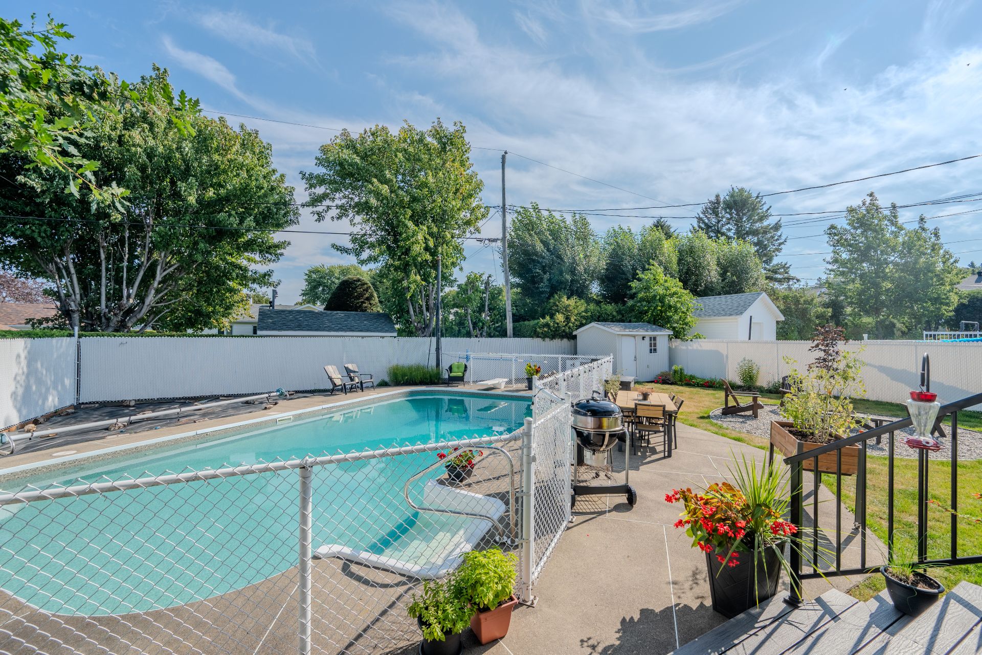 dégagé, idéale comme salle de cinéma, espace de loisirs ou pour recevoir. * Garage intégré : surdimensionné (20 x 21 pi), il offre une hauteur libre généreuse, une porte de grande dimension, ainsi qu'un accès intérieur et extérieur. * Niveau inférieur : salle de lavage indépendante, salle mécanique et pièces polyvalentes (bureau, gym, salle de jeux, atelier ou musique).Caractéristiques extérieures * Terrain plat, intime et clôturé, aménagé avec soin. * Grande piscine creusée. * Joli coin feu idéal pour les soirées entre amis ou en famille. * Galerie arrière attenante. * Stationnement en pavé uni pour 4 véhicules.