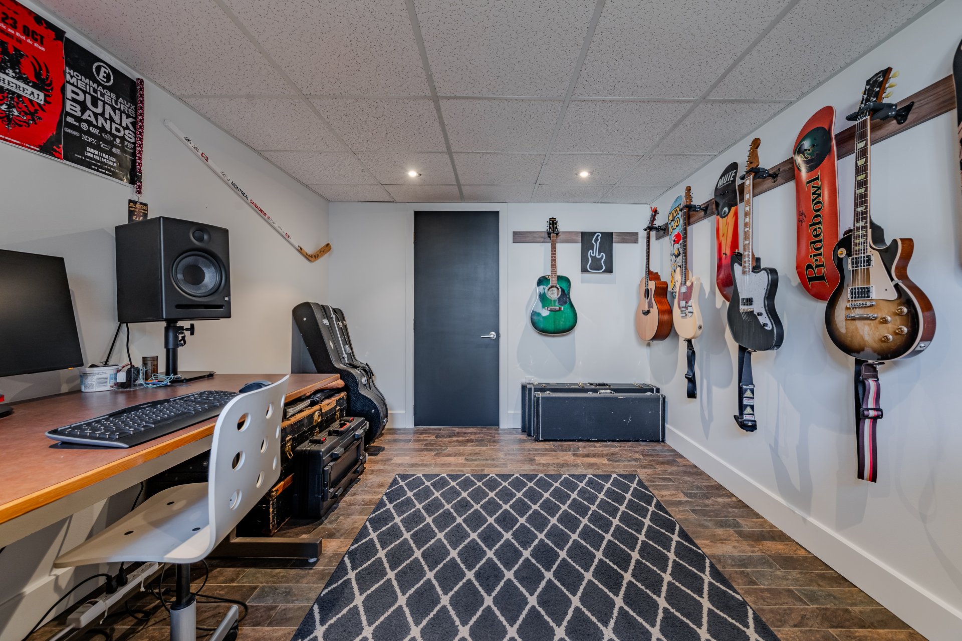 Le lave-vaisselle, les supports muraux pour guitares dans la salle de musique ainsi que l'ensemble de caisses de son Sonos.496 Av. Sirois , Rimouski