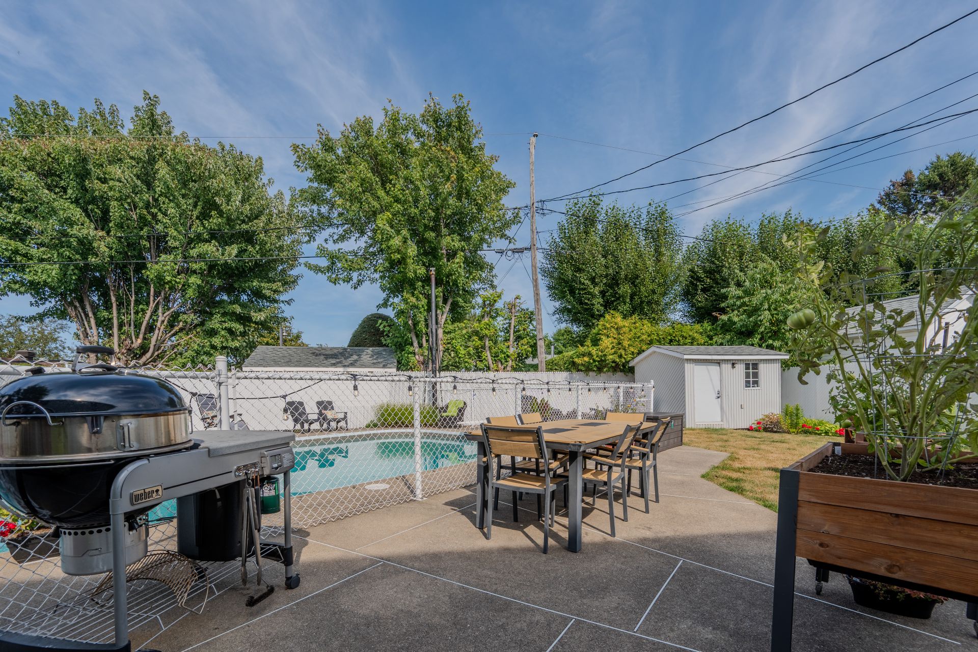 Les stores, la piscine creusée avec sa thermopompe, sa toile, sa balayeuse et son système de filtration, l'aspirateur central et ses accessoires, l'ouvre-porte de garage électrique et ses deux manettes, les supports à vélo dans le garage, le téléviseur et son support mural de la petite salle à dîner, la table ronde et ses trois grandes chaises de la petite salle à dîner, les supports muraux pour téléviseur et la tablette murale du hall d'entrée.Exclusions